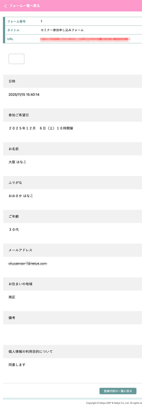 送信された内容が、管理画面から確認できるようになりました!