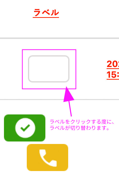 クリックするごとに、違うラベルが表示されます。たとえば「電話が必要」という「電話ラベル」を表示させたい場合は、電話ラベルが表示されるまでクリックして、電話ラベルが表示されたところで、そのままクリックを止めてください。